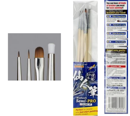 This set is four kinds of unique brushes (Point Brush Short/Point Brush Long/Filbert Shape Brush/Dry-brushing) which are useful for basic painting.
